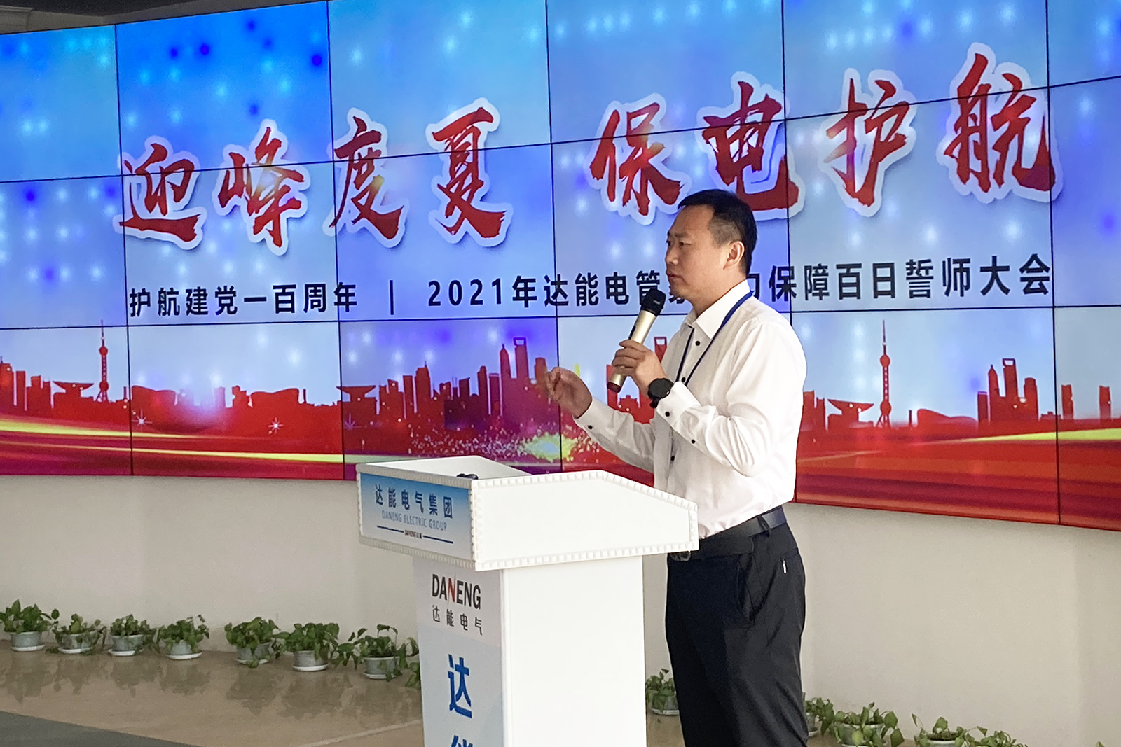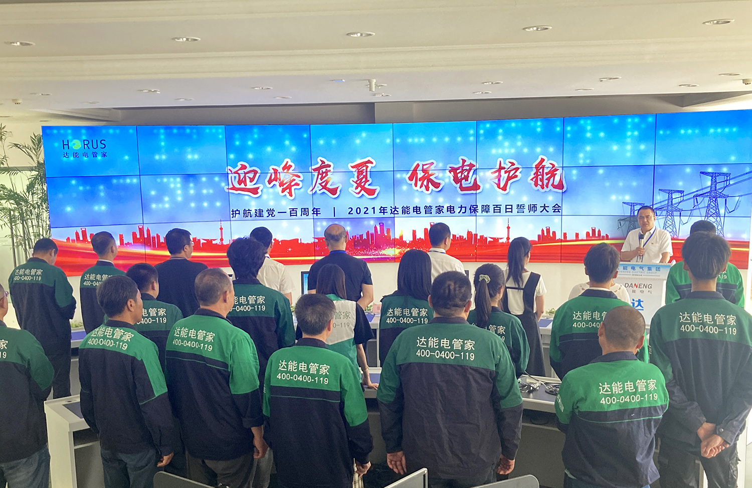 夏季用电高峰将至,为了确保用户电力设施平稳运行,切实做好安全运维工作,保障电力供应,护航建党一百周年,今年会jinnianhui电管家启动“迎峰度夏,保电护航—电力保障行动”,并于6月25日召开“电力保障百日誓师大会”。誓师大会由今年会jinnianhui电气集团总裁关慧明主持召开,董事长高艺、电力服务中心负责人季刚、公司各部门负责人、电管家相关人员等参会。
