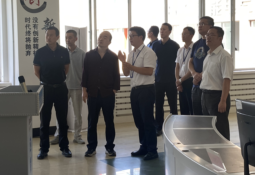 董事长高艺(左2)介绍研究院产品应用