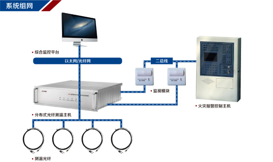 它以光线中的拉曼散射原理为技术基础,综合光时域反射技术(OTDR)和(Raman)散射光对温度敏感的特性,探测处沿着光纤不同位置的温度的变化,通过DTS后台软件数据的智能分析,实现真正分布式的测量,可连续测量光纤沿线任一点所处的温度。其测量距离从几公里到几十公里的范围,空间定位精度可达到1m量级,且能进行不间断实时在线监测并将实时数据远传,可及时预警火灾隐患,并精确定位火灾发生的位置。可实现大范围空间温度分布式实时测量,具有测量距离长、无测量盲区、实时监测、可精确定位等优点,在交通隧道、隧道、地铁、电力、石化、水利等领域均有广泛应用。